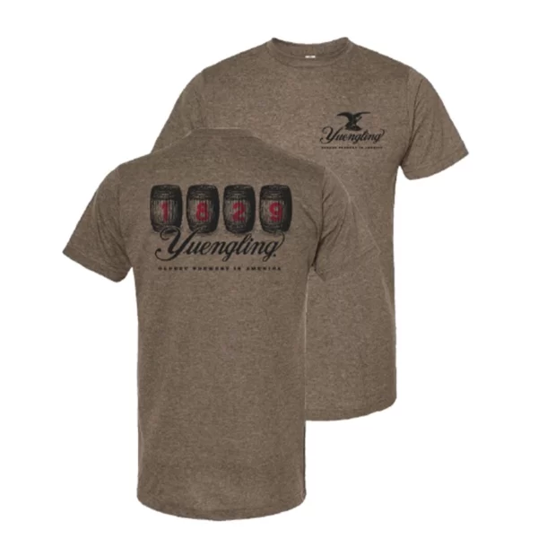 Show your Yuengling pride with this timeless tee. Featuring our classic Yuengling logo on the front, this shirt keeps it simple up front while making a bold statement on the back. Four barrels spell out 1829, paying tribute to the year our brewery was founded, with our iconic script and tagline—Oldest Brewery in America—just below. A comfortable fit and classic design make this shirt a must-have for any Yuengling fan.