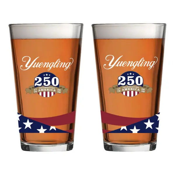 Raise a glass to 250 years of America with this limited-edition Yuengling pint glass. Featuring patriotic detailing and a commemorative design, it’s the perfect way to enjoy your favorite beer while celebrating history, heritage, and tradition. This glass is not dishwasher safe.