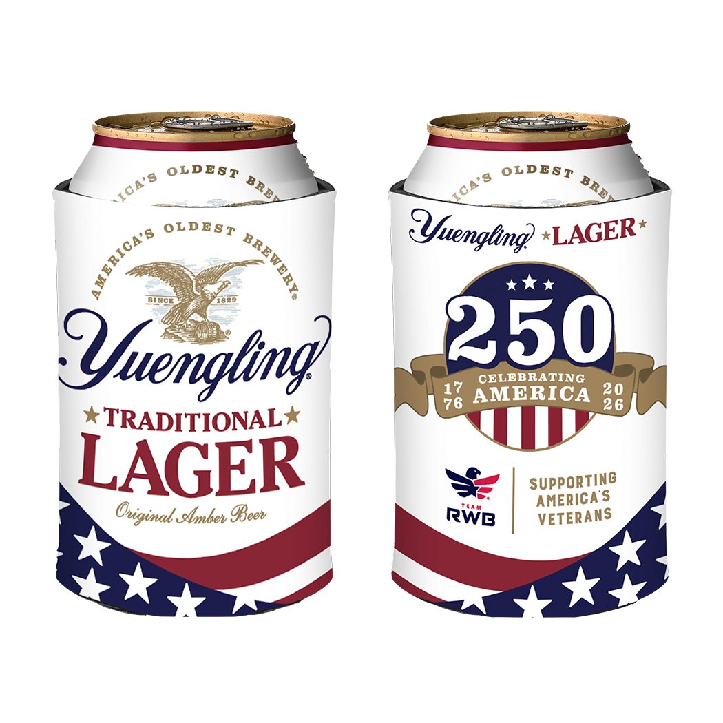 Celebrate a historic milestone with every sip. This limited-edition Yuengling Lager can cooler is designed to honor America’s 250th anniversary, blending iconic red, white, and blue styling with the legacy of America’s Oldest Brewery. It also highlights Yuengling’s continued support of veterans through its partnership with Team Red, White & Blue. This two-sided beer holder is designed for 12oz cans.